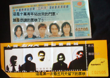 (下)人間五月天,驚爆紫荊城?!還蠻有趣的TITLE的,就是那場中正大學校園演唱會的票根兒,那場演唱會是福特ACTIVE叫我大A的校園巡迴……(還有人記得那支搞笑廣告嗎)那場演唱會五月天是主角,同行的還有滾石的光良.黃嘉千.汪佩蓉……