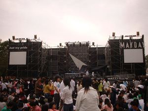 然後歌迷也都紛紛地站起來,一陣推擠之後,沒想到往後的六個小時就再也沒有坐下的機會了..囧rz
