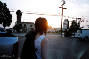 熱!這是走出機場的唯一感覺。可是這個熱卻和台灣的熱完全不一樣,台灣的熱是像蒸籠的熱,美國的熱卻像是烤箱的熱。還是因為乾燥的關係。記得高二的時候,美術老師去西班牙居住過,她就描述過西班牙的熱,高溫說不定會達到四十度。那時我們都想,媽呀,那該怎麼生活?!可是老師說過,西班牙的熱也是乾熱,所以並不會感到不舒服。在那一刻,我突然想到這件事,這種感覺就好像又貼近了西班牙一點。(笑)
