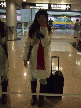 害我不停的在機場裡閒晃,還順便對鏡自拍了一下。XD