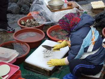 (海女正在切海鮮)
