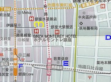 (上面地圖中沿著銀座站的橘色點點那條路)