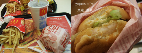 首先日本的麥當勞也有午餐優惠時段唷,我記得這個鮮蝦堡套餐在優惠下是500日元有找。
