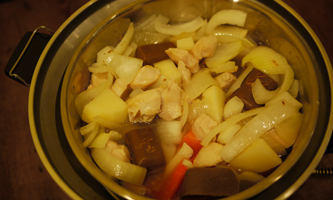 是不是要先把蘿蔔跟馬鈴薯噸熟之後再把雞胸肉丟下去。