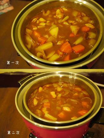 這時也順便攪一攪鍋中的東西,以免我的大塊咖哩塊真的不溶化。