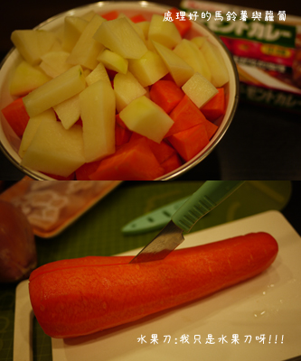 馬鈴薯與蘿蔔的切塊大小,我很隨性,大家說要切小塊一點比較好熟,可是小塊就沒有口感了啊。